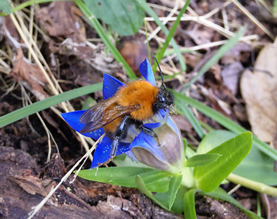 寿命なのか、リンドウの上でぐったりとしたトラマルハナバチ。