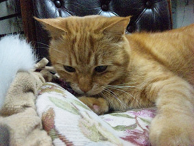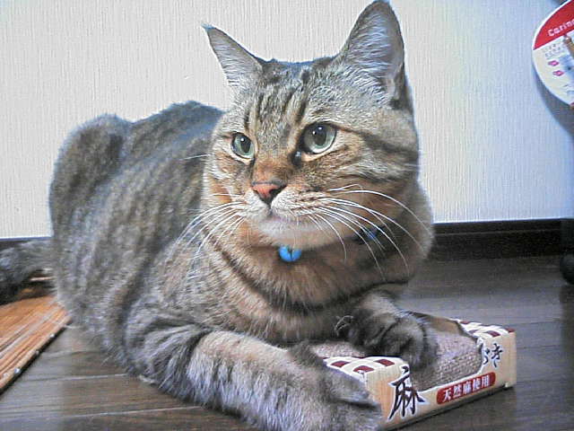 猫じゃらしに集中している猫。子猫みたいな表情のおやじ猫10才。