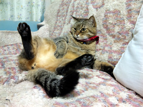 兄弟猫に八つ当たりの噛み噛み攻撃を受け、放心状態。