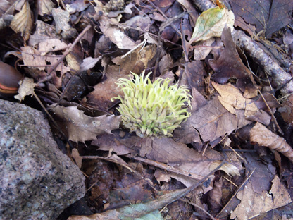 一面茶色の地面に似合わないライトグリーン。まるでエアープランツ。