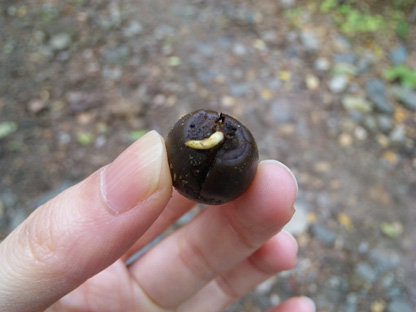 根が出てましたよ。根が出たどんぐり、初めて見ました。